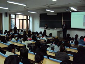 教授讲课和学生互动结合,气氛融洽,使整个讲座显得更生动更和谐。讲座结束后,留给每位德语班同学的是深深的思考。