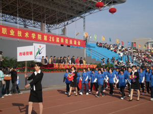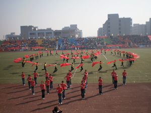 今年的秋,丝毫没有颓废的倾向,没有满目萧条的景象。有的只是同学们高涨的运动热情,青春的朝气。2009年11月5日,一曲《运动进行曲》振奋人心,各系方阵同学身穿系服,迈着矫健的步伐进场了,他们个个精神抖擞,信心百倍,表演了各系精心准备的节目。接着,院长李曙明为本次运动会致词,激动人心地宣布学院第26届田径运动会正式开幕!随着运动员代表宣誓,裁判代表宣誓。扇子舞、彩旗表演、院武术队和健美操队的精彩表演为开幕式画上了圆满的句号。
