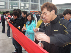 12月8日,我系开展了“一二九”纪念活动。对于“一二九”这一伟大的学生运动,我系开展了政治学习活动。在政治学习过程中,同学们都认真贯注。授课同学在充分搜集了各方面的相关资料后,向同学们介绍了“一二九”的有关内容,慷慨激昂的解说使同学们更加深刻地了解了“一二九”纪念日。随后,为了让更多的同学铭记历史、弘扬民族魂,我系组织部又开展了“铭记荣辱历史,吹响爱国号角”的横幅签名活动。虽然天空飘着小雨,但是在这浓烈的氛围感染下,过往的学生都会驻足,并在横幅上郑重地签上自己的名字,许下承诺,以表决心,祝福祖国越来越强大!这一活动得到全体学生的大力支持,一时间掀起爱国热潮。在活动结束后,同学们纷纷表示,作为新一代青年,他们要在铭记国耻的同时,化悲痛为力量,刻苦学习,全面发展,为实现祖国现代化奉献自己的力量。此次活动,有利于帮助大家铭记历史,更好地展现了当代大学生良好的精神风貌,也唤醒了同学们责任感和使命感,增强了广大同学的爱国热情。
