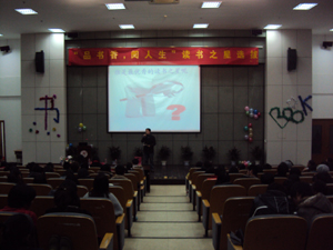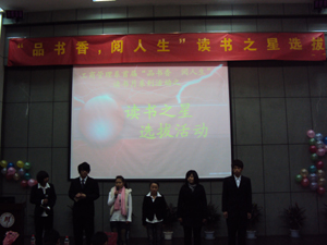 在本次活动的中心环节选手读书推荐活动中,王建的《朝花夕拾》带领我们重温文学巨匠的风采;任晓彤《平凡的世界》向我们深深的感受到在平凡世界中的我可以不平凡;酷爱体育的樊银芳引领我们走进她的《网球世界》;奚佳媛的《趁父母还健在》使我们深深感受到亲情的可贵,也引起我对家的想念……