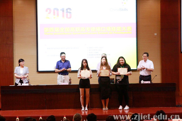 6月12日上午,第四届全国高职高专德语口语技能竞赛在我院顺利闭幕。教育部职业院校外语类教学指导委员会其他语种分会主任刘德章、副主任宛立群,学院院长陈德泉、副院长张红出席了闭幕仪式。中国辞书学会双语工具书专业委员会副主任、上海译文出版社副总编辑朱亚军致闭幕词,宛立群作大赛点评,刘德章宣读竞赛结果,张红主持闭幕式。