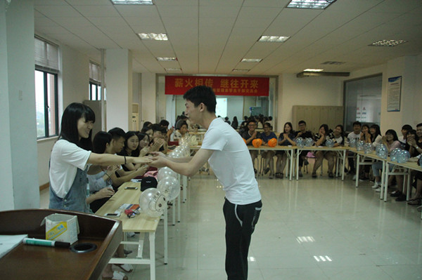 交流会上,老一届学生干部分享了他们一年多来在系团学工作的经验和感受,表达了对老师们的栽培与感恩之情,并对下一届团学干部寄予了美好的祝愿。新一届团学干部则对即将面临的团学工作做了规划和憧憬,并真切表达了即将投身团学工作的信心和态度。工商管理系团总支书记朱超云老师回顾了一年来团学工作的亮点成绩与发展之路,并对新一届团学干部提出了新的目标和希望。交流会期间,老一届团学干部不仅为下一届团学干部送上了精心准备的部门“传家之宝”,如音响、明星签名CD、工作资料U盘等,还带来了自编自导自演的朗诵节目《薪火相传 继往开来》,让交流会变得更具特殊传承意义。