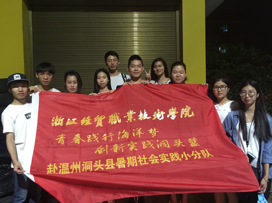 据悉,本次浙江经贸职业技术学院“青春践行海洋梦,创新实践洞头蓝”暑期赴温州洞头社会实践小分队在温州进行了为期两周的社会实践。这两周,小分队开展了“七彩课堂——义务支教活动”、“敬老院送清凉活动,工商学子在行动”等系列主题活动,队员希望能够通过这样的方式,与北岙街道的老一辈、小一辈一起了解海洋保护和五水共治的一系列知识,弘扬海洋知识,共建青春海洋梦。