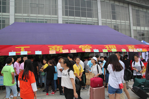 (五)师生合力,齐心服务。迎新现场,全体班主任、辅导员和学生志愿者始终是一道亮丽的风景。他们有的早上五点就已到现场接待迫不及待的小鲜肉,有的使出百般武力率队身边的小团队,有的则使出洪荒之力一趟一趟带领新生顺利入住公寓。尤其是新生班主任助理,除了一整天的接待工作,傍晚还一个一个走访学生寝室,送去温暖和叮嘱。