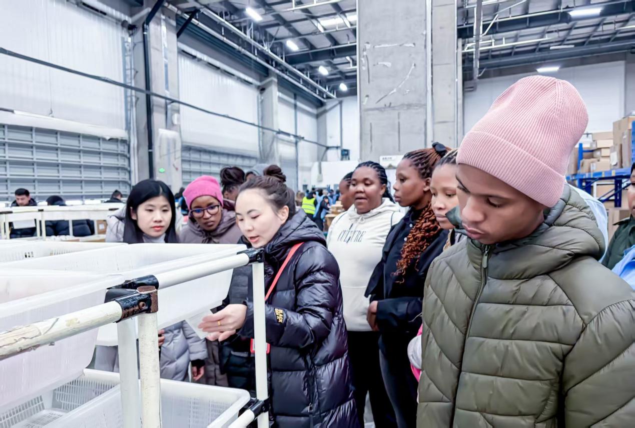 进入仓库,南非学生立即被高效有序的作业场景所吸引——重型货架林立,各色托盘整齐码放,工人们正熟练进行分拣、打包等操作。在智能仓储管理系统屏幕前,大家驻足观看,实时可视的库存信息与物流状态,生动体现了科技对仓储管理水平的提升。