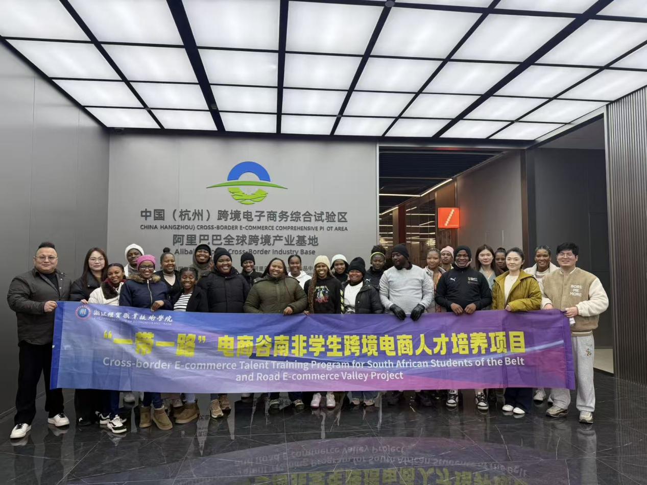 1月28日,学院组织“一带一路”电商谷南非学生跨境电商人才培养项目的20名南非学生,前往阿里巴巴集团滨江园区参观交流。本次活动由鲍忆涵、金鑫、曾婉蓉三位老师带队,旨在将电商平台认知、数字技术应用与跨境贸易实践相结合,探索“产业洞察+电商实战”的育人新路径。