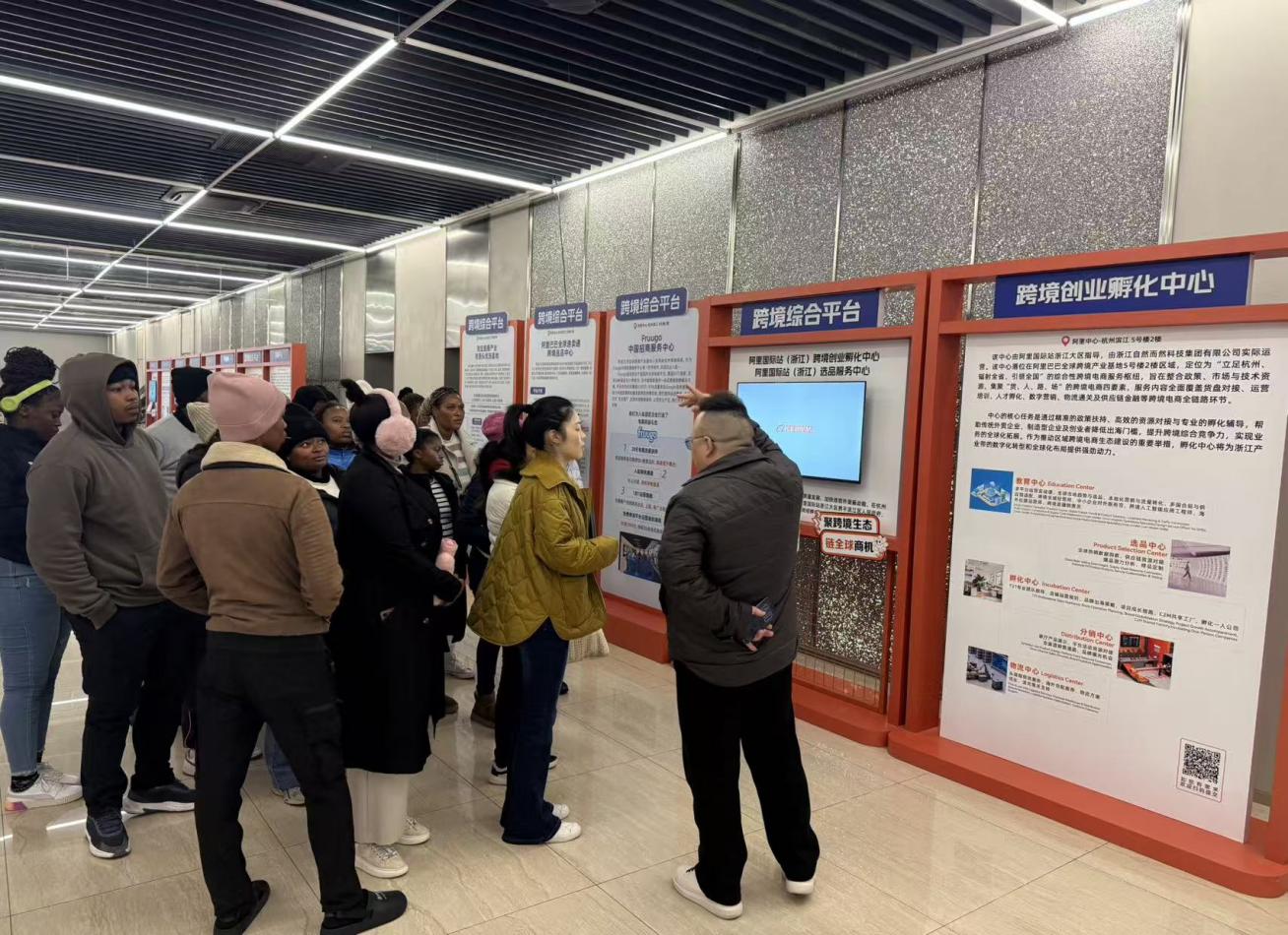 在阿里中心滨江园区,南非学生通过展厅参观、案例讲解与互动演示,系统了解阿里巴巴的发展历程、核心业务板块及其在全球电商生态中的角色,切身感受中国数字商业基础设施的建设成果与创新活力。带队教师金鑫在交流环节中,引导学生从跨境电商运营者视角,思考平台赋能、数据驱动与全球市场本地化策略等实际问题。