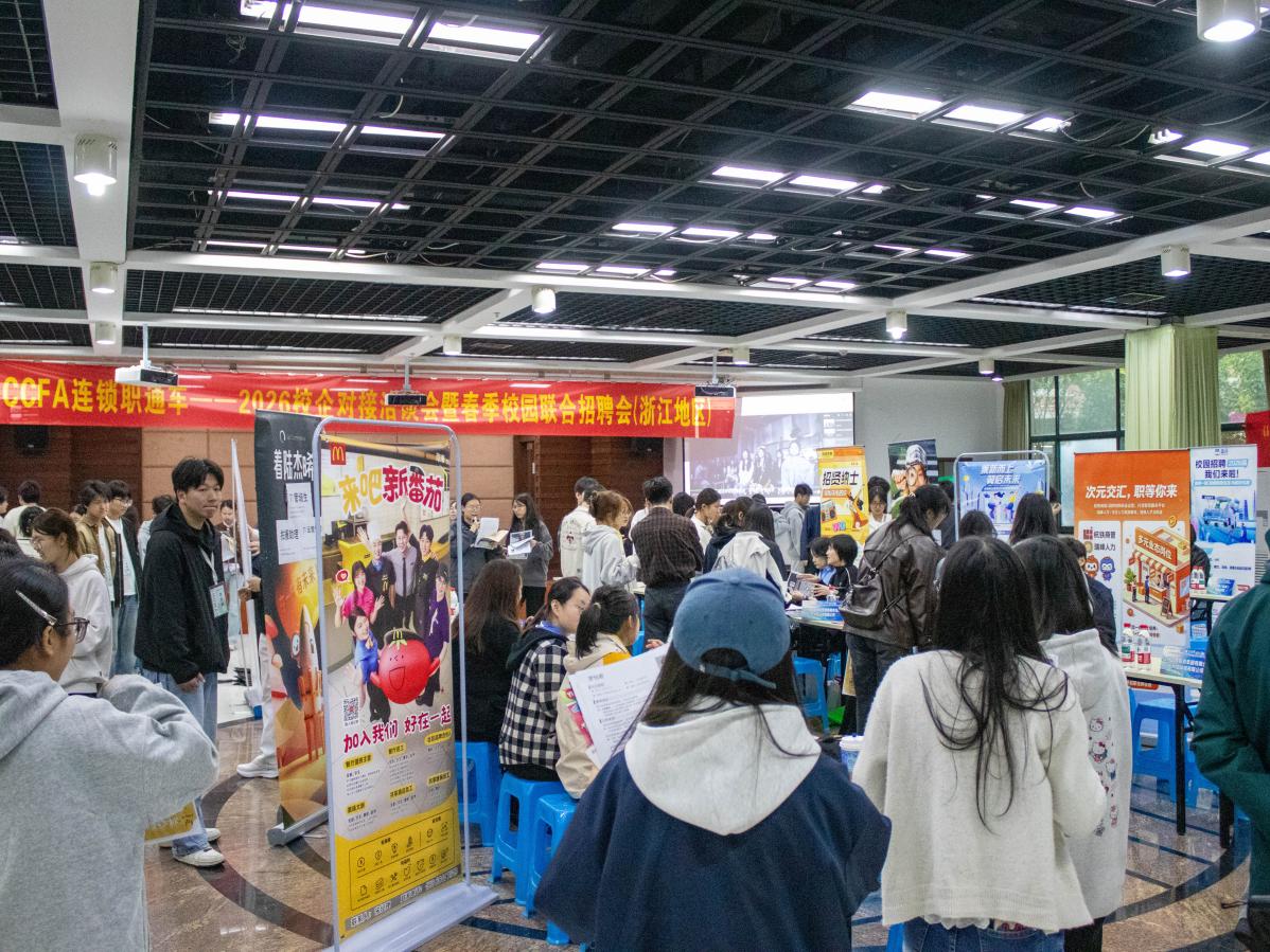 学院承办了CCFA连锁职通车---2026校企对接洽谈会暨春季校园联合招聘会(浙江地区),并举办了“浙里有才,数贸启航”数字贸易专场招聘会,包括瑞幸咖啡、盒马、知味观、金拱门、全贸软件、腾山丰跨境电商等28家企业,提供65个职位,包括储备店长、运营管培生、跨境电商专员、供应链管理等175个岗位,100余名学生与企业达成初步就业意向,有效实现人才供需高效匹配。同时,针对2027届毕业生开展了岗位实习动员暨宣讲会。接下来,学院将继续深入贯彻落实国家“稳就业,促增收”政策,持续深化产教融合,夯实校企平台,助力毕业生实现高质量充分就业。